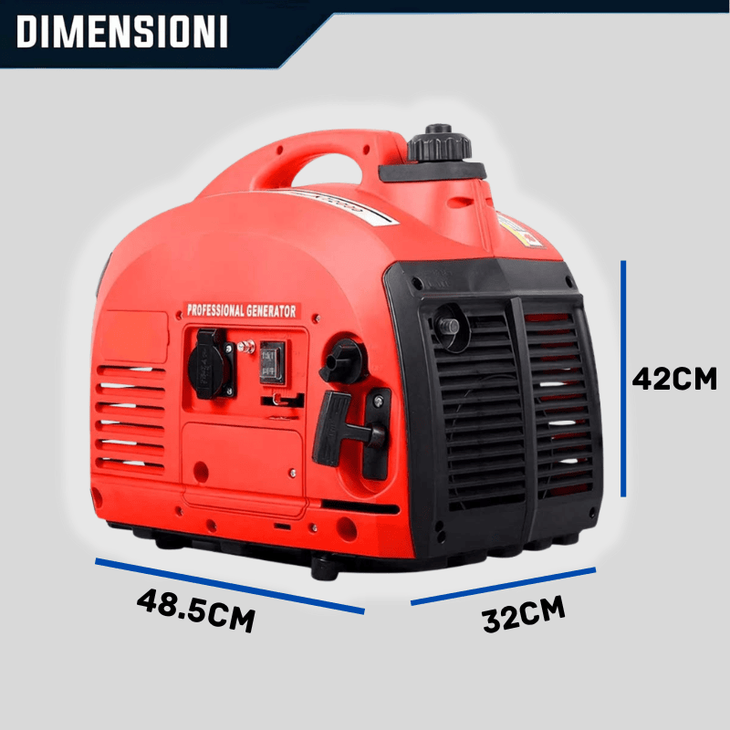 Generatore di Corrente portatile stabilizzato con potenza massima di 2000w, Accensione Facile grazie alla tecnologia Easy Start, Motore da 52cc con emissioni ridotte ed un funzionamento SILENZIOSO , serbatoio da 4 Litri