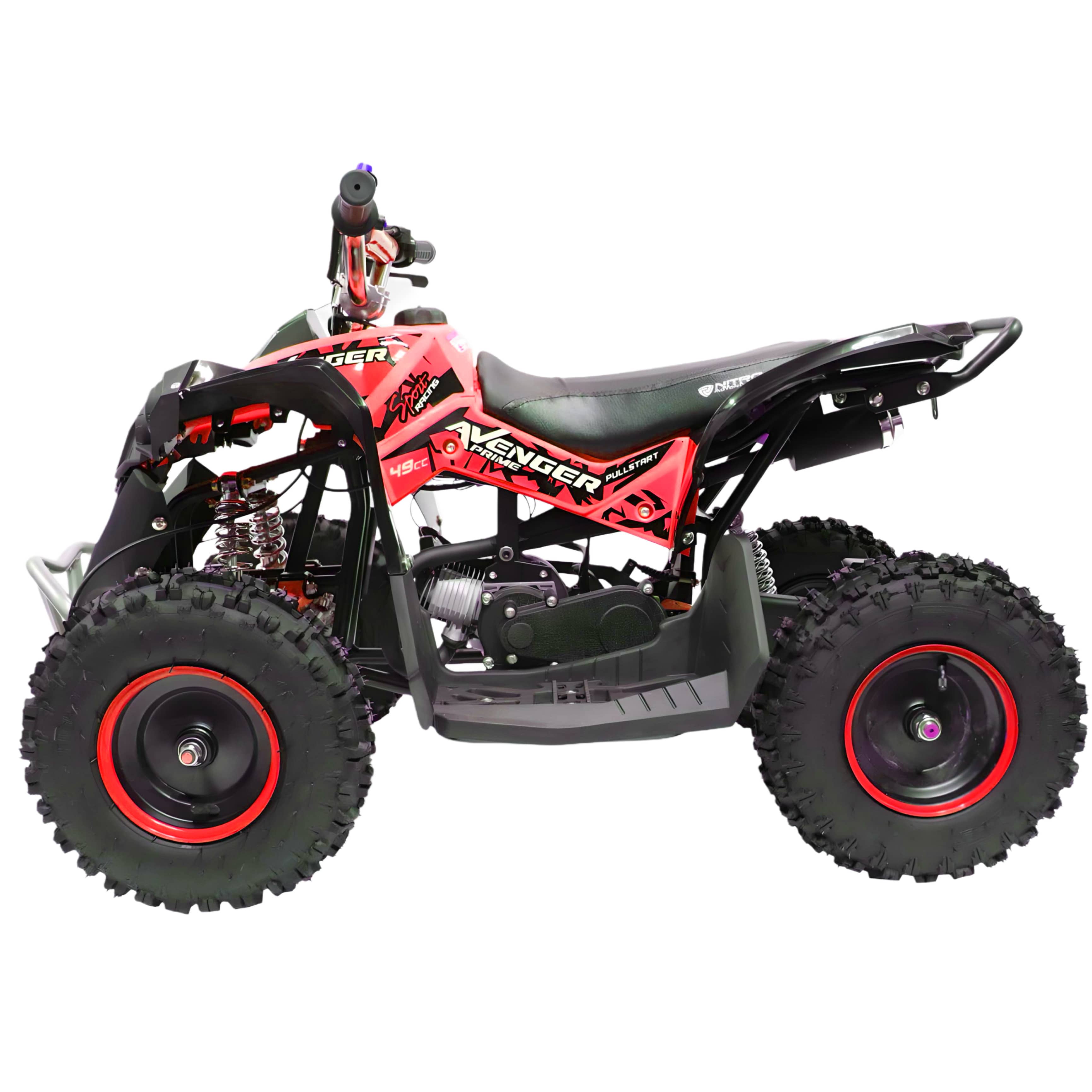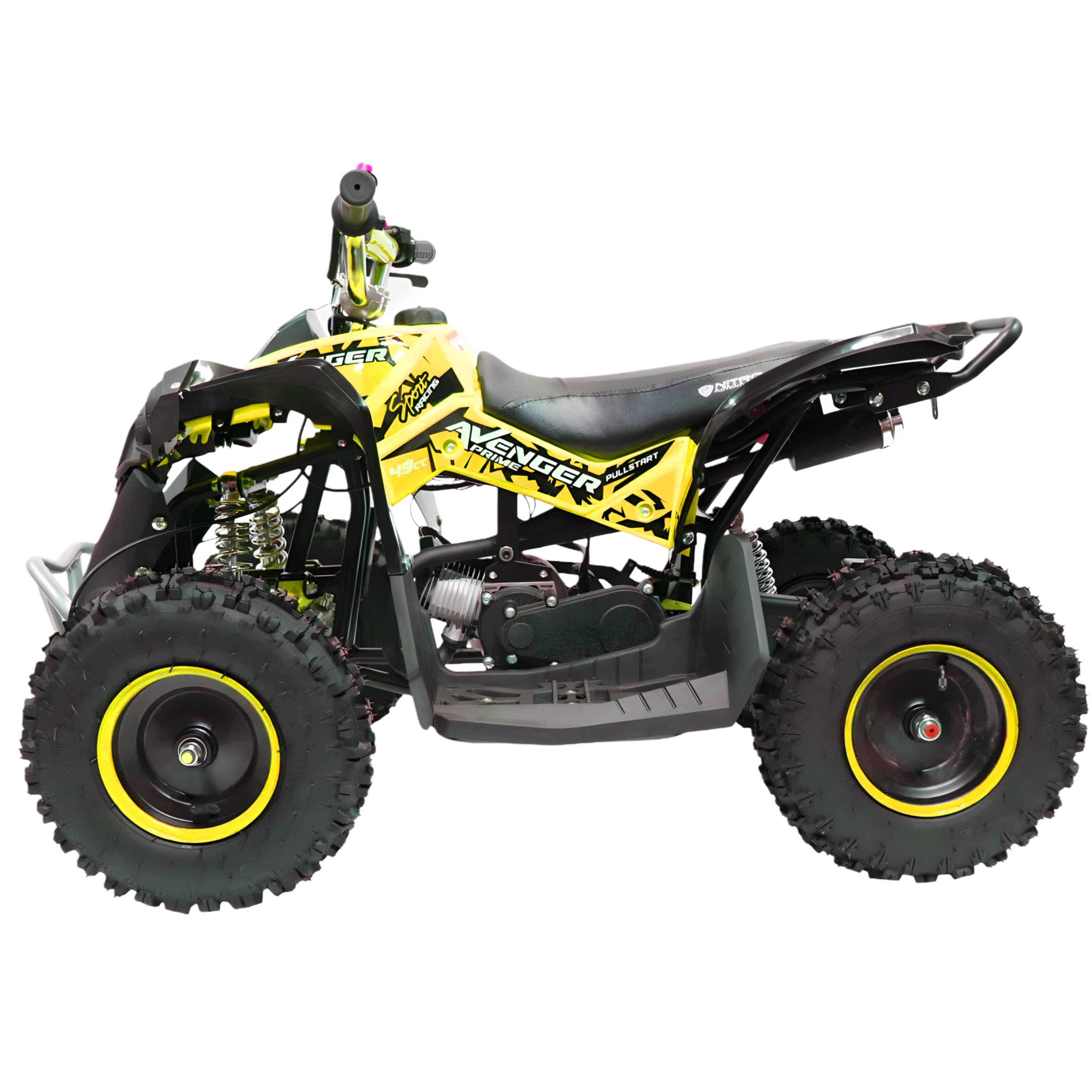 Il Mini Quad AVENGER 50cc, con motore 2 tempi raffreddato ad aria, è veloce, divertente e sicuro per tutte le età. Con avviamento Easy Start, carburatore migliorato e regolatore di velocità, garantisce ottimo divertimento.