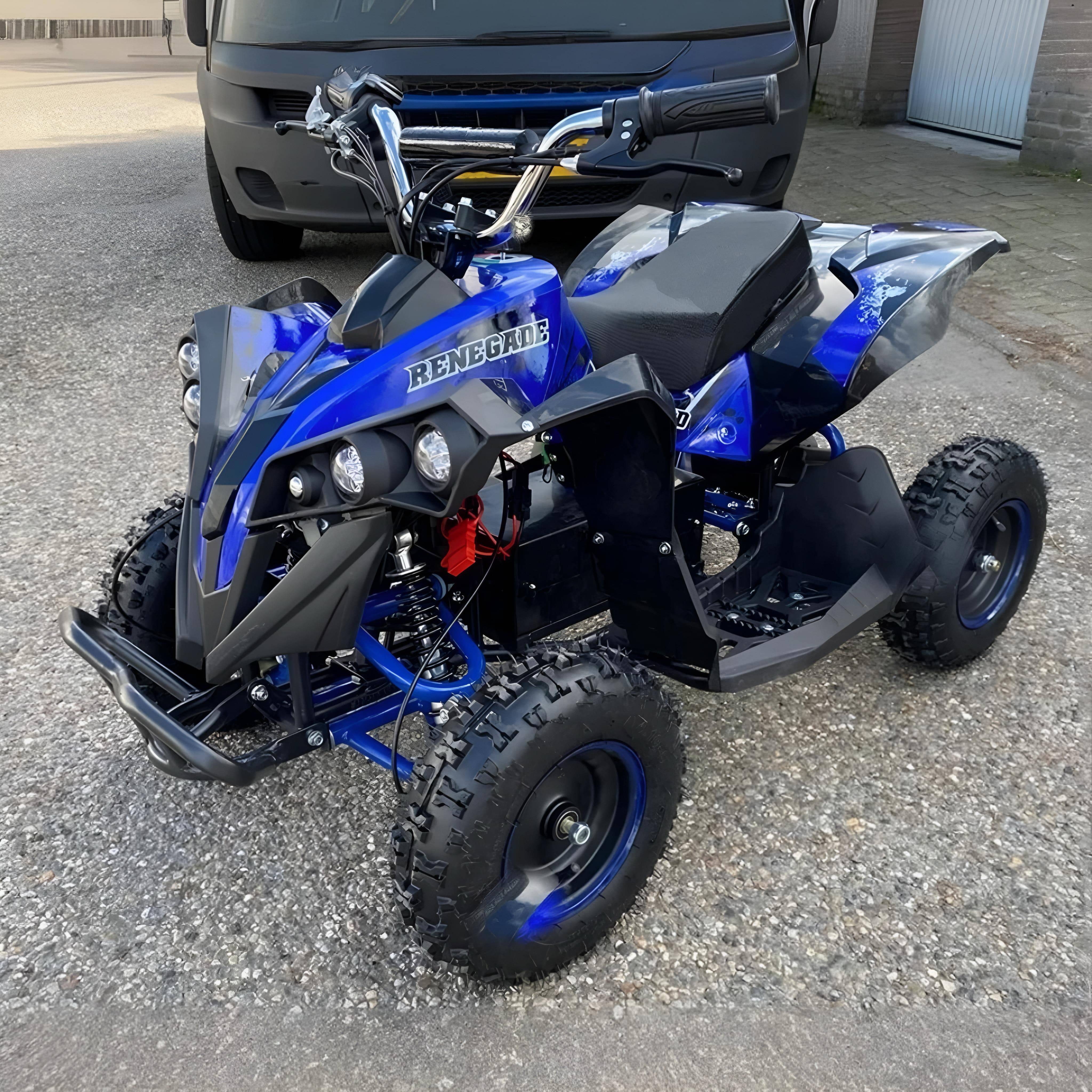 Il Mini Quad E-AVENGER, con motore 1000w e ruote da 6", è veloce, divertente e sicuro per tutte le età. Con ricarica rapita, carburatore migliorato e regolatore di velocità, garantisce ottimo divertimento.